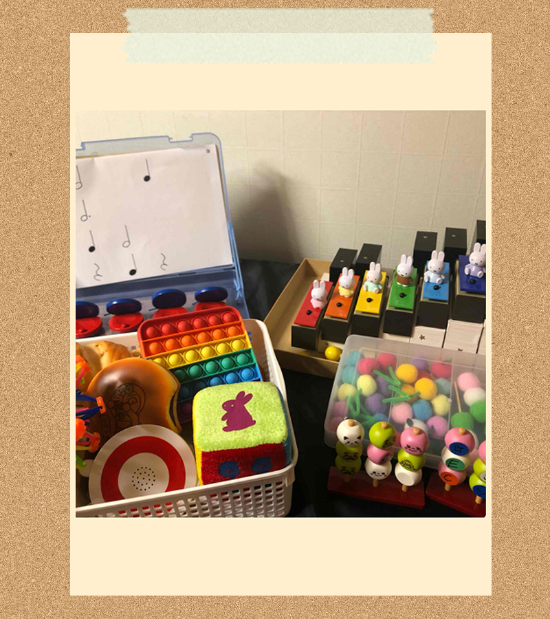 ・たくさんのレッスングッズで子供もピアノ教室に通うのが楽しそう。