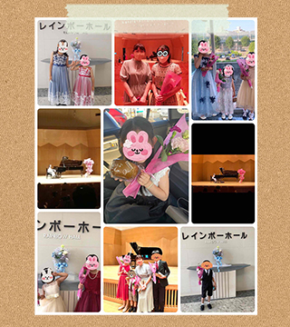 年に一度、ホールでのピアノ教室発表会。 ソロ曲や、ファミリー連弾、講師連弾と多彩な内容で 一人一人が輝けるよう、講師も全力で開催しています。